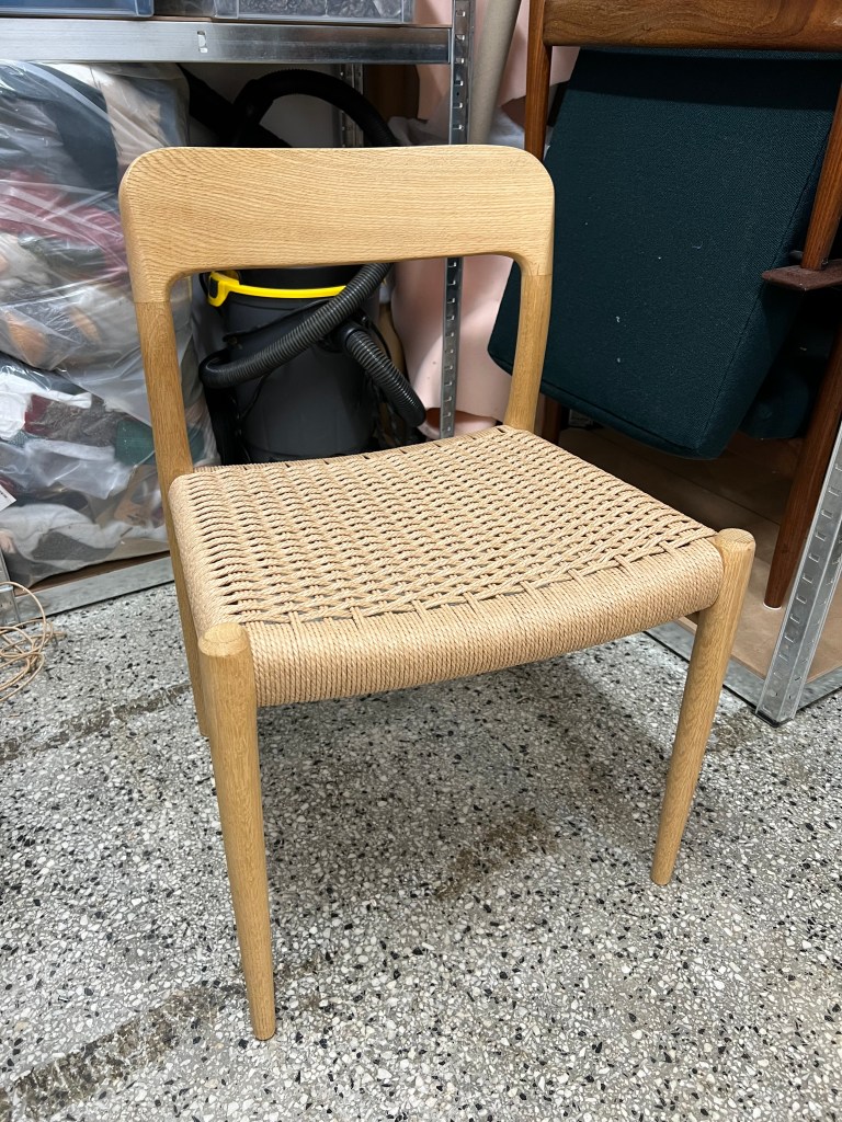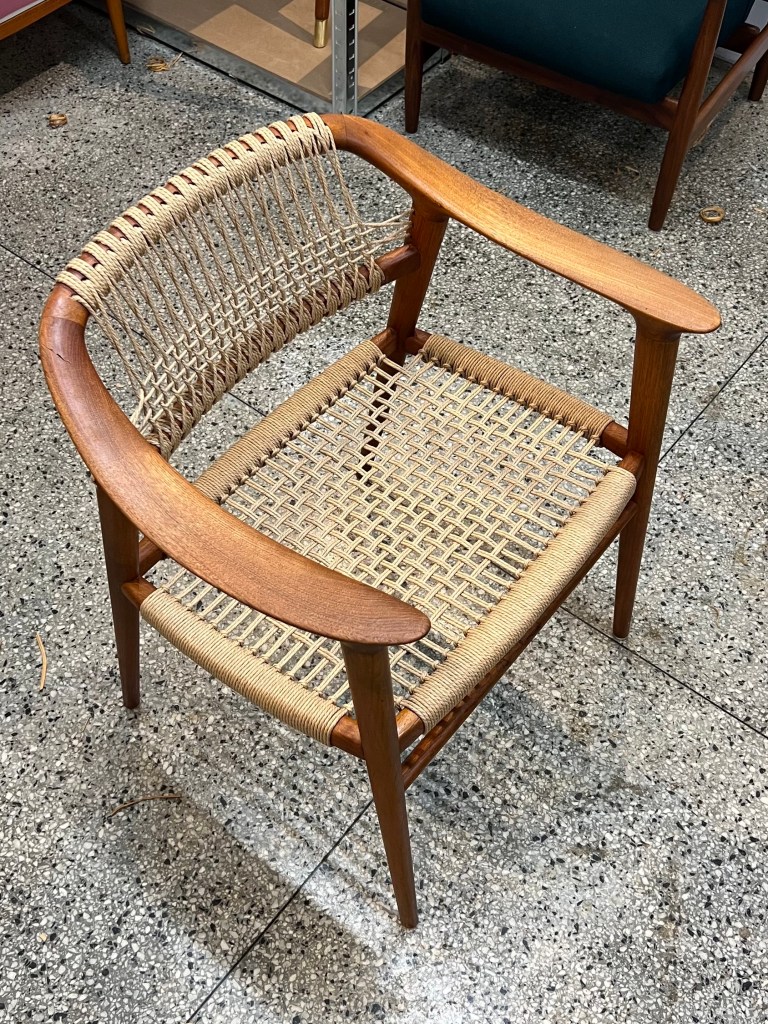 Se for eksempel Bambi-stolen fra Rastad & Relling på bildet til høyre under. Her har opprinnelig rottingflett blitt erstattet med tilsvarende fletting i papirgarn. Har du noe annet litt utradisjonelt i tankene? Ikke vær redd for å ta kontakt!